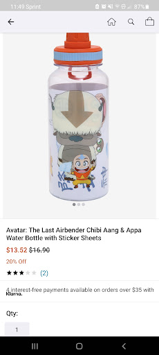 Read moreI absolutely love this store. I have never had a bad experience and everyone is super nice. I only gave it 4 stars because I recently bought a product that is not worth the money. I bought this ATLA water bottle, was holding it from the hook (which reached down to my knee), dropped it onto carpet and the bottom just shattered. I took it back, they were super cool about replacing it. This morning, dropped it again, shattered again. Not worth the $16, especially if it's for kids or anyone clumsy. (Pictures to show...