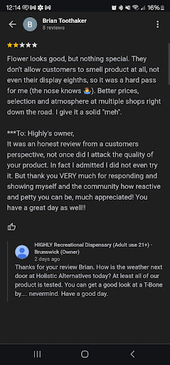 Read moreHIGHLY recently opened down the street from me, and has quickly become my go-to for cannabis products. It's about a mile away, which is super convenient, but the real draw is their selection.