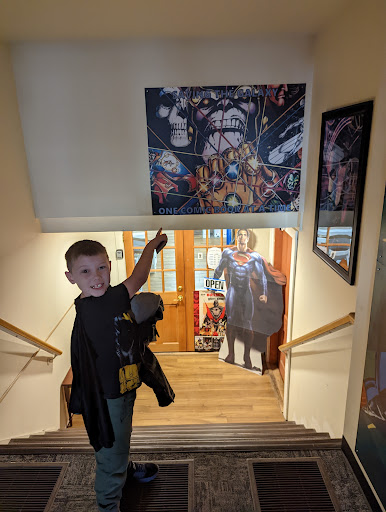 Read moreCool new shop in downtown Brunswick. It's down a (clean, freshly-painted) hallway and up a short flight of stairs, but the signage directing you up to the shop is very clear (not sure if there is an elevator for handicap access). Great artwork on the walls leading up to a bright and airy shop space in a historic building. The shop is easy to browse, and has a good selection of single-issue comics as well as bound graphic novels. Lots of new releases, but also has many classic series. The shop owner was friendly, personable, and open to suggestions for his new store. Seems to be a great spot for both experienced comic readers or those who are just getting into comics and...