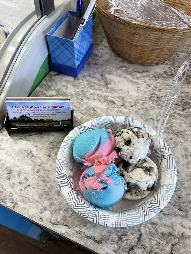 My husband and I visited Peace Hollow Farm market looking for ice we stayed for the ice cream and samples of cheese. The cheese is so delicious we decided to buy a couple blocks, we also purchased some sourdough bread and got some ice cream before we left the owner was so warm and welcoming, and gave us a tour of the shop and offered any help that he could provide as we were camping in the area. I wish I had markets and service like this...