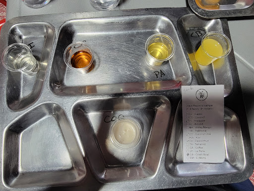 While traveling the 30 yards from the "tasting area" to the industrial bathroom, I observed workers adding cheap industrial purees and juices in the mixes for their rum-based liquors.