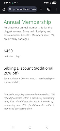I would love to give it 5 stars for quality and cleanliness but I was disappointed by a couple of things. I wish there were a membership option for larger families. I have 4 kids. So we wonât be able to go very often. Maybe once every 3 months. So disappointing! My kids loved it and I wish we could come once a month. But the membership rates reflect that owners only consider families with 1-2 kids. Not realistic for many families in this town.
