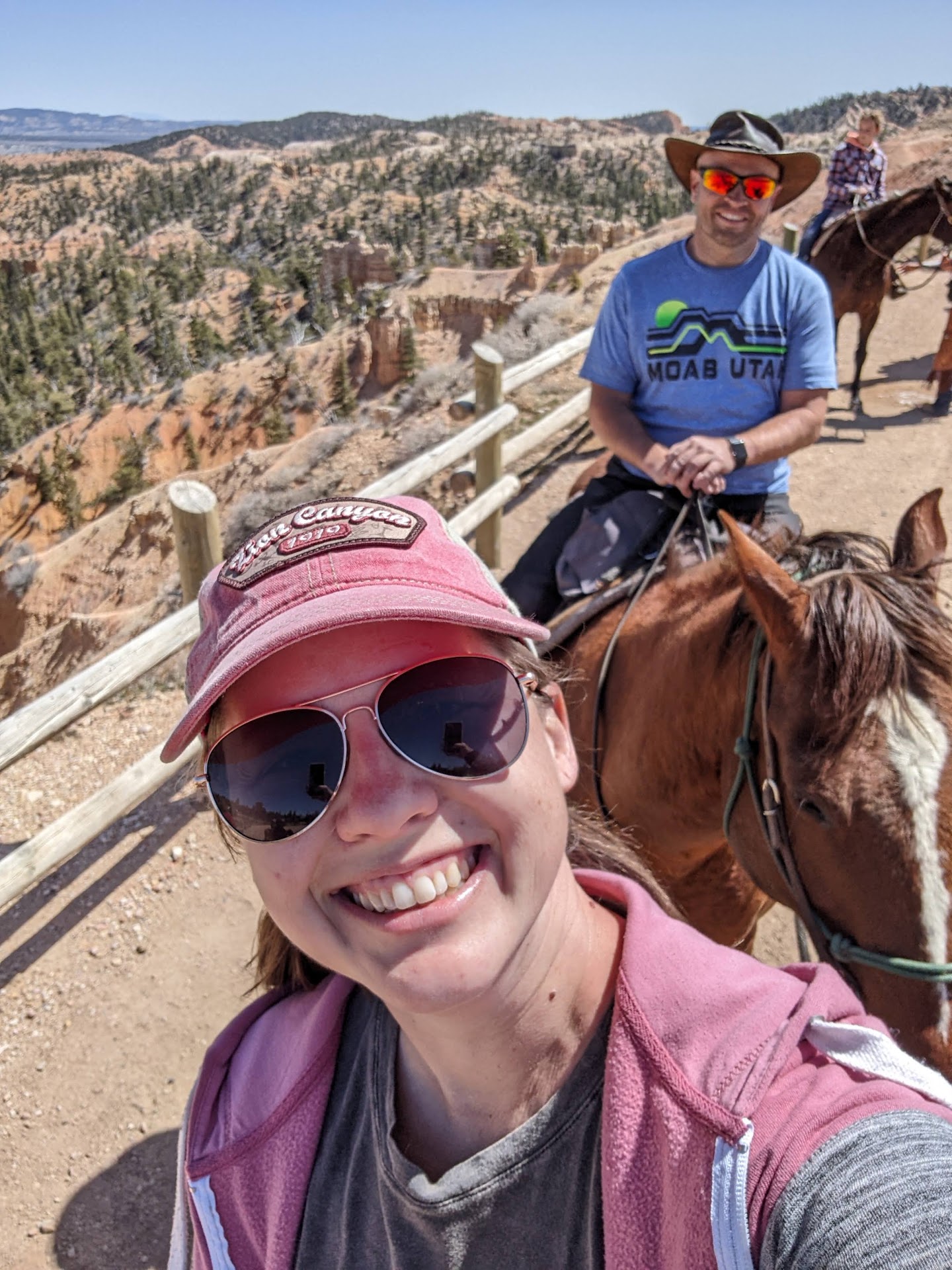 The short version of my review: my family loved every second of this! My kids (ages 16,14, and 10) had never ridden horses before, and our guides made sure all of us knew how to be good riders and have fun. The trail is a beautiful walk through a pine forest area that leads to the rim of Bryce. Our horses were all sweet and well trained, and our guides took extra care to borrow our phones and take pictures for us as we went.