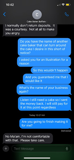 I reached out to this bakery last March in efforts to get a cake made for my fiance for his birthday. I couldn't locate her contact information anywhere. Months later she finally got back to me on Facebook Messenger with her phone number. I decided to get a $200 cake made for my own birthday party. I sent her 8 inspiration images and asked her for an illustration of what she was going to do before I put all my faith in her making the cake and agreed to pay $200. She said she doesn't provide illustrations but gave me confidence I would like the cake. I asked her how confident she was on a scale of 1-10 that I would like it and she said 15. Given her confidence, I decided to proceed with the cake. Yesterday (my birthday party on Labor Day 3 days out) she sent me photo of the cake's progress. I informed it that I did not like it and it looked absolutely nothing like the inspiration images I sent her. Instead of asking how she could fix it she said "I sent you your money back." It's now 2 days before my birthday and party where I'm having 75 guests and I have nobody to make the cake for me. Even though the cake was hideous, I said I would still pay for it because I was desperate and in a bind. When I asked her this morning if she was going to finish the cake for me she replied no that she wasn't comfortable with it. UNDER NO CIRCUMSTANCES SHOULD YOU USE THIS BAKER. She has no business ethics, she's cocky, and cannot bake cakes that will meet your expectations. I've attached photographs of our conversations, the cake she made and the inspiration images I provided her. The ugly popcorn cake is what she made (clearly looking nothing like the inspiration images I provided her). I am deeply disturbed by this entire situation and if I could sue her I would. I beg of you to not use this baker...