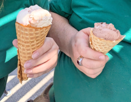 Ice cream - 5 stars Food handling- 1 star Waffle cones- 5 stars Holding the waffle cone with bare hands - 1 star