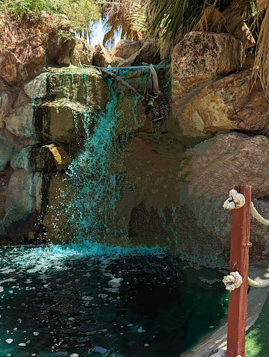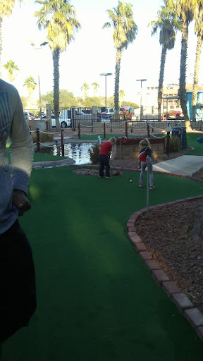 The mini golf courses are well tended. They are clean and in most cases in good repair. Both 18 hole courses have a variety of hazards and obstacles like, sand pits, rock sinks, challenging curves, and plenty of ponds that are very easy to enter. There are nets to retrieve your balls which is made easier by using floating balls. The surrounding for these courses is amazing, saturated in trees; pines, palms, etc... (enough to forget your in the desert) For $5-$7 these 36 holes are a great way to spend an hour with your kids.