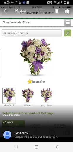 I had checked around to area florists to send my Mom a little something for Mother’s Day. She lost my Sister & Father to unexpected short battles of Cancer over the past months in 2017 and didn’t want her to not get something at her door for Mother’s Day. The only issue was my Mom herself landed in the hospital through to Friday so wasn’t sure she would be home to even get anything. I called Tumbleweeds Florist after many other options and got Annette on the phone. I asked if she could take on a Mother’s day order and she said she could. I was on their site and looked at all of the options and they were out of many vases, etc but she was very sure she could do something nice within the budget I gave her. I told her that her reviews weren’t as good as the other local florists so I phoned them last. I said but now that I’ve gotten you on the phone I would like to see if I could place this order with you instead! She literally answered the phone with a “smile” and I was fairly confident things would go well but I’m out of state so I waited for my Mom to get them & send a picture before I reviewed them. I also asked that the arrangement (which was a beautiful Lily planter with a heartfelt balloon that Annette suggested) not arrive after 5pm as she won’t be able to answer the door then. My mom wasn’t expecting anything due to all the little “hiccups” that happened during the week that would have made a delivery difficult. I told Annette even though we are sending a beautiful plant my Mom will cry when she gets the balloon! Well.... after getting home from Church my Mom called me already and it’s 3 HOURS behind where she is and she couldn’t believe she got such a beautiful gift on Mother’s Day and then said “ I have to tell you.... the Lily plant is so beautiful but the BALLOON made me cry”! I started laughing and said... “I told Annette that would happen”. I would give this caring florist a try and give them a great review right away if they have met or exceeded your expectations! The other local florist was not really wanting my business or my $. I’ll call this Florist FIRST next time! Thank you Annette & Tumbleweeds Florist for exceeding my expectations as well as making my mom happy & tears of joy on Mother’s Day with a last...