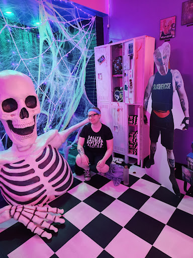 Angie Shriner teaches terror twist dance Areobics and creates such a positive learning environment while being an incredible dancer but making her moves feel accessible. She tailors everything to be horror related and it’s so much fun! (We summon the spirit of Richard Simmons and what could be better?)