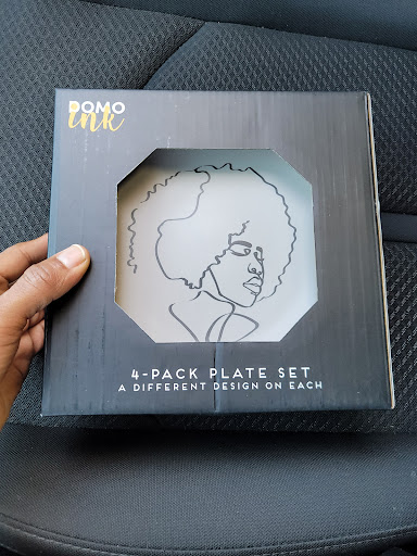 The online selection had been depleted but I was hopeful. I was specifically interested in plates from Domonique Brown of DomoINK - They didn't show the item at the store when Valeria (sp?) checked. She showed me Tabitha Brown's Collection before offering to show me the section curated with all their BHM items and we saw the coasters from DomoINK and from there she worked her magic. She was able to find plates in a recent shipment that was scheduled to be put on display later that day. I also grabbed Tee from the HBCU Design Challenge - Designed by Mekenzy and a Sweatshirt from Robin Lewallen's Collection based on her suggestion ...