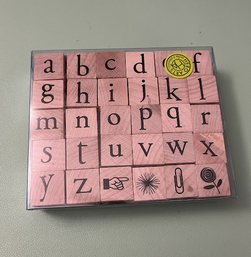 Specifically, I was looking for alphabet rubber stamps and a staff member quickly helped me locate them, although they are quite expensive @ $23+ (when compared to the set of alphabet + numbers for $14 down the street at Barnes and Nobles). If I remember correctly, there were about 2-3 sets with different fonts to choose from.