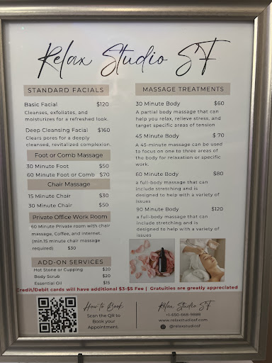 Read moreI decided to give Relax Studio SF a try. It just opened this month and it's a refreshing atmosphere and charming studio. There's also a couples room and small cafe area for refreshments. I got a relaxing massage and enjoyed my hour treatment to include Hot Stones. I will...