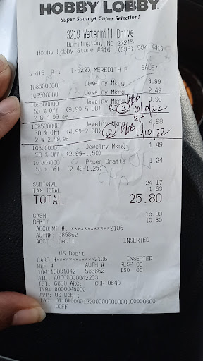 Read moreI'm a regular craftsman, so I wanted to make something special for my grandmother and other family members for the upcoming holidays. I went to Hobby Lobby after I got off work today with a few ideas in mind but nothing concrete as I wanted to look around and get the best fits for each of them. Well, apparently I must have taken too long to shop so I got profiled as a shop lifter. I had employees follow me around and watch my every move. Being a reasonable person, I finished my shopping without ever being asked if I needed any help. Even other customers noticed the employees watching me so they started acting strange towards me. Then, I went to check out and an employee walks over to the cashier and tells her to read something she wrote on her note pad. Again, I gave them the benefit of the doubt and just casually talked with the cashier. Then, I noticed that she was handing and inspecting everything more than usual. So, I casually mentioned that the store should update it's system so she could scan products in faster than hand typing it all in the register. She looked at me and said she was told to be very thorough with everything I was purchasing. I fully intended to pay for everything I wanted to get and honestly I felt disrespected as well as profiled. As I am a shy person, all of the negative attention was not only embracing but it gave me anxiety as well. I spent $125 that day and I've bought from here many times before but I am not going to be a returning customer after dealing with the...