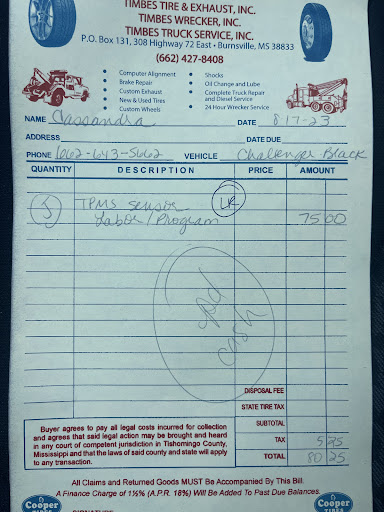 My husband bought two wide tires for the back of our challenger online. We went to gateway to have them put on but we’re told they couldn’t do it there because the tires were too wide for the rim. My husband decided to go to timbes for an 2nd opinion and they agreed to do it. They mounted the tires and charged him $160 (which is more than he expected to pay but was told it was “a job” and he paid it without complaint. By the time we made it home from timbes, the tire sensor started showing a flat line on the driver rear side. I called timbes and was told to bring it in to be looked at. I took it there a few days later while my husband was at work. I was lectured by the owner about how he “should have charged $300 to mount them in the first place” and “definitely didn’t make any money off of it” and told me it would be “near impossible” to get the sensor past the bead but they’d try. 10-20 minutes later they had the problem fixed but charged me another $80 for doing it. The sensor was fine prior to them mounting the tires so it obviously happened with them mounting the tires so I thought they’d fix it no charge. I understand the tires were wider than normal and it may have been a little more difficult to mount but I feel they should have just declined doing it in the first place rather than charging me for something that happened after he agreed to do the job and charged extra for doing it; and to lecture me like he did because I was there without my husband. I won’t do business...