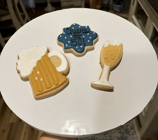 I recently ordered some special cookies from Kay's Cakes for a 50th birthday party and I was extremely happy. The cookies were not only visually stunning, but they were also absolutely delicious. The attention to detail in the design was remarkable, and they were a huge hit at the party!