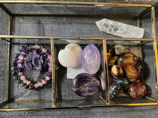 There is quite a variety of crystal fetishes, taxidermy art pieces, incense, herbs, etc..