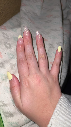 I want to start by prefacing that I have never left any sort of review, but this was my first time getting my nails done since 2022 and I just had a baby 7 months ago so I finally wanted to do something for myself. I got my nails done 5 days ago and 3 have already lifted and popped off. I arrived around 3:00-3:30 on a Sunday as a walk-in and they close at 6:00. My pedicure started around 4:00 and the girl who did that did a wonderful job. I sat down with a gentleman to do my acrylics/manicure around 4:45-5:00 and people kept piling in. He was very quiet which I didn’t mind. But then I could tell he started rushing and hurrying due to the line of people and also heard him talking about it with other staff, who were also complaining about people coming in. I’m not very confrontational especially when I have someone in the middle of doing something for me in hopes to look nice, but I was holding out hope that the shape of my nails would improve by the end of the process. Unfortunately a lot of them are crooked which isn’t the end of the world, however I feel like they would’ve looked better had he not been rushing. I also left with gel polish cured to my fingers which I had to peel off when I got in the car. And again, the fact I’m 5 days out and already have had 3 nails pop off. The picture I attached is also from the day of and they look like I’d already had them for a little while. I’d go back for a quick pedicure but I don’t think I’ll be back for anything to do...