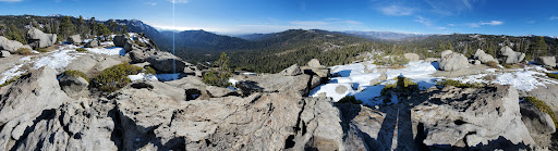 The top of the peak opens out to granite boulders and a large viewing slab to the north west side. This is one of my favorite places to watch sunsets from. You can see down to the road from this...