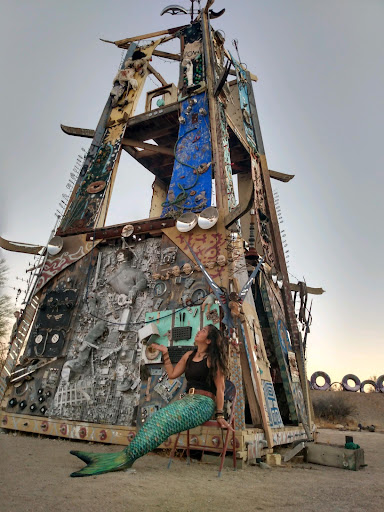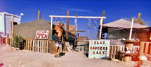 an old man, his friend, a sweet dog named Mezza, and some funky little junk-turned-treasure handmade wares to buy--that about sums it up. if you're going to come visit salvation mountain/the slabs/etc., don't be an a-hole: donate $ or buy something here and spend a few minutes talking to the full-timers in the area so you will be connecting with/supporting this small community rather than just using it as a social media...