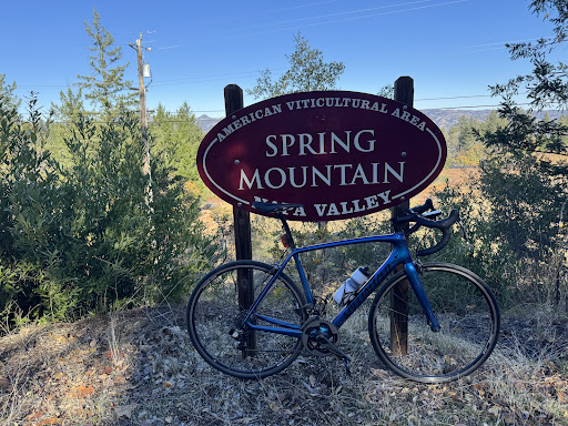 We proceeded southeast from Calistoga along the valley floor, riding a well-built bike path all the way to Oakville. The day was pleasant, with minimal wind and temperatures in the low 70’s. After stopping at the Oakville Grocery for a water bottle refill and a pastry, I soon found out how we were going to grab the desired elevation in an otherwise flat area. Turning off of the highway, we ascended the Oakville Grade, a popular hill training route with a gain of 700 feet and an average grade exceeding 10 percent. Trace repeatedly reminded me that it was ok to turn around at any time, but I was too stubborn to give in. Reaching the top proved to be hugely satisfying while the subsequent descent was somewhere between exhilarating and terrifying.