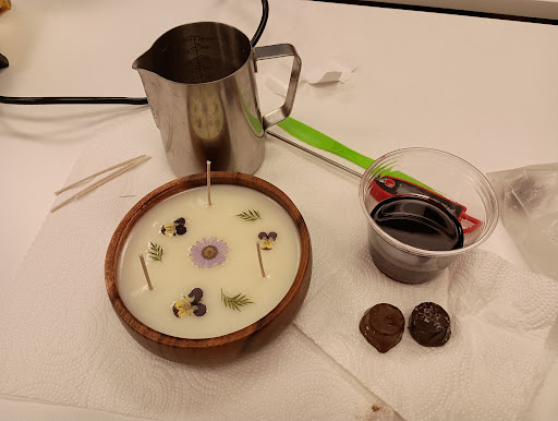 I went to the make a candle night at Sweet intentions gift boutique.It was hosted by Lisa and her husband, the owners of the shop.We learned step by step how to make beautiful and great scented candles. We ate delicious chocolates from their shop and had a glass of wine.It was a really fun time, and I loved how my candle turned out.I will definitely be signing up to go again.There gift store is also such a fun place to shop, and you get to visit with their cute dog Daisy...