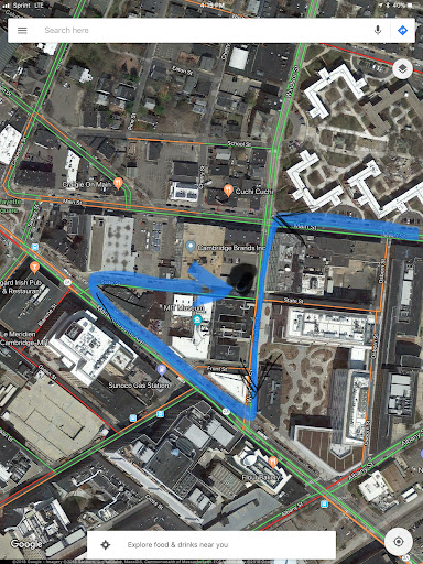 I took I90 east to exit 131 (Cambridge Street). Stay in the left lane after they split as the guardrail is really close on the right for an offtracking trailer. After the light, get in the middle lane and the road becomes River. Turn right onto 2A (Massachusetts). You'll need both lanes to make the turn even with the tandems slid all of the way up. Then turn left on State Street for staging.