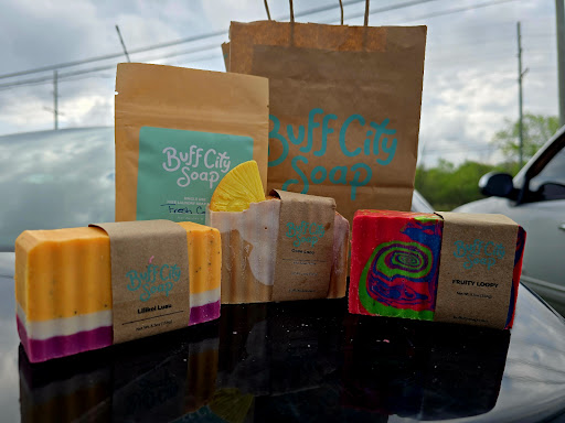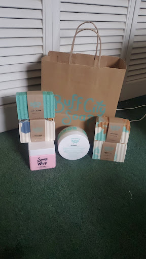 Read moreOmg ! If u loved bath and body works back in the day but don't go now due to the chemicals go here they have awesome simple ingredients. Beautiful lite sents, kids optioseats,, masculine seats. And if u just want them to mix ya up ur very own signature sent then they will do that as well, how freaking cool is that! And ur sent can be make into a laundry detergent, bar soap, whipped soap, whipped body butter, shave bars,hand soap, body oil, sugarscub.loofas African net sponges and yeah I had a blast in here it was kinda nostalgic because they have the sink with all the testers like bath and body works but there sink at buff city is bigger better and has actual cotton towels that they put in a hamper and wash. They have a washer in there. They have some very beautiful sents already made up too incase u don't know how to make ur own. If ur a woman that enjoys coconut then get the pink sugar one omg so good. Then they have one called narcissist and that smells nostalgic like...