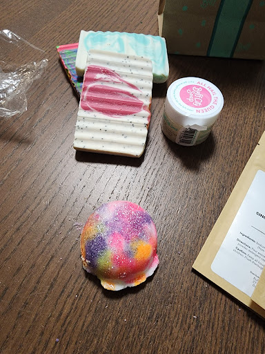 I wound up purchasing their Soap Whip and mini body butter in the scent Narcissist, along with a couple bars of soap and a seasonal white fir scented bath bomb that was on clearance. The staff then checked me out and gave me a free laundry soap sample in the scent Kraken.