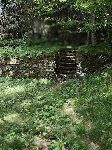 You start up stone steps which if you stay on them, leads you to the Mountains-to-Sea Trail. But it’s also a quick walk to where George Vanderbilt built the magnificent Buck Spring Lodge in 1896. The buildings may be gone, but you can still walk around the site, stride through the large entryway where the stables once were, and even go down the steps into one of the old storage areas. You can even follow a trail down to the old spring house of the Vanderbilt property.