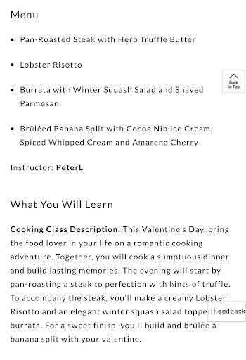 I donât often post negative reviews because I typically believe you should give places the benefit of the doubt, but this was one of the most horrific cooking classes (if you want to call it that) I have ever seen. We arrived at 6:50 for a 7pm class. We checked in and were told to shop around while the chef prepares for us and we probably got started 10 or so minutes after 7pm. We were all told to wash our hands and throw on an apron.