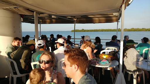 Read moreWe took the sunset cruise on the Lady Chadwick. If you look at my other reviews, you'll see that I often give 5 stars. Not this time. First the good: The crew and staff was nice. Boarding efficient and timely. The boat was clean. Arrival and parking easy and well organized. Weather great. But there were two major downsides: 1) Passengers were packed onto a broad deck crammed about as full as possible with plastic chairs and 4-top tables. See my attached picture (unfortunately I didn't take this picture to show the crowds, so you can't really see how crowded it really was). My wife and I were early, so luckily we were against the rail (although the 4-top table arrangement forced us to look more inward than outward). 2) The cruise travelled fairly slowly south along the narrow intercoastal waterway, with little feel of ocean, and a view that most times was surrounded by land masses in all directions. Not much "adventure." After this southerly trip, we returned to the north end of Captiva Island. Shortly before sunset the Captain went briefly through the gap of Captiva and North Captiva islands. He poked the stern out toward the ocean and held position for about 10 minutes as the sun set. Even standing, it was difficult to see the sunset from our table due to the deck arrangement and number of passengers. So... some aspects good and some...