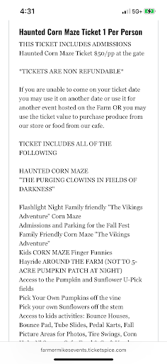 The red beard and blonde hair made a perfect pair for taking tickets. They did their job exceptionally well and quickly, so I recommend purchasing your tickets in advance to avoid any delays. And also you have to do it online if youâre gonna do the haunted, they told us because of the signature which I understand and I totally agree with that. My family was really thirsty so we went to the market. They were so nice so many good options on the drinks. The cashiers were so amazing. We left amazing tip because they did an amazing job. Also, they told us about a mini pumpkin that comes with our package because we got 13 tickets which everyone gets their own mini pumpkin which I was happy with. We visited the hayride, and the kind staff helped my mom up and down the stairs. I didnât expect them to go above and beyond, but they were incredibly helpful. Afterward, they brought her wheelchair right next to the hayride.