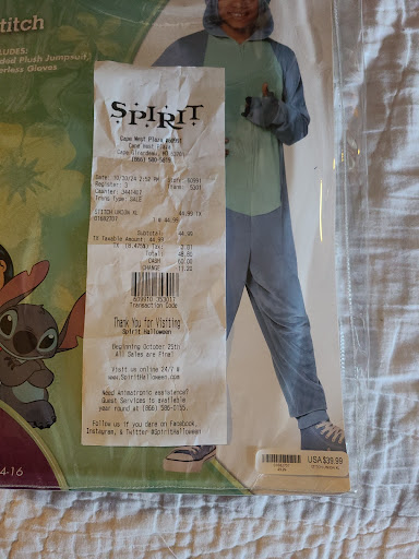 Read moreThis store and the other stores don't have a changing room to try on any of the costumes, and they just recently posted signs in their stores , no returns, this is ridiculous , I would advise everyone to not shop at any of these stores, their policy sucks, especially when you can't try on any of the costumes in store before you buy them. They need to be turned into the BBB. Don't fall for this stores garbage, go online and buy and don't give them any of your business if you are a smart shopper. I guess that's why it's called trick or treat, these stores get the treat, (your money) and they get to trick you( no returns)....