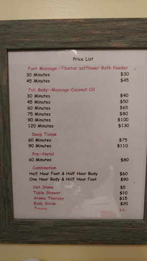 Read moreI went yesterday evening to get a message thinking it was 65 dollars and the lady surprised me at the end of the message saying it was 75 dollars. She did a great job on me. However wish she'd been a little more honest about the price. I tipped her very well. I think she was afraid I would not tip her. Oh well honesty is the best policy. This is not my 1st choice where I go to get a massage. I use this place as my 2nd choice. I have a place where I normally go but they were completely busy. In the end honesty is the best policy. This is why they got 4 stars...
