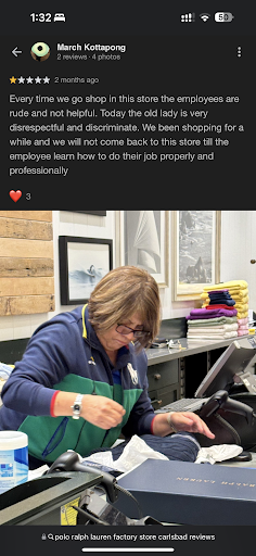 I highly recommend not to buy from this store. I spend almost $1000 to buy Polo Ralph Lauren last week at other factory store in San Diego. Unfortunately by mistake I got one T shirt of size S whereas my size is L. I realized that when I wear T shirt. I went to nearest Polo Ralph factory store in Carlsbad, I had the original receipt as well as All tag intact. The store manager initially refused to replace it with Size L as I tried it & it had my perfume fragrance: I wasted my time to convince store manager & at last they agreed to replace it. I have been buying from this store because it closed to my place but now I will try my best to never go to this store of Polo Ralph. This is my worst experience in any Polo Ralph store. I highly recommend not to buy from this store as if there is any issue in the product you will have hard time to get it replaced. Better to buy from Macys. Also if there is so much problem for store managers, they should close these stores and sell only in shops/online I have been great fan of Polo Ralph Lauren products but this time it has really given me a bad taste which I will...