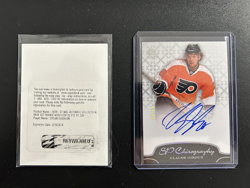 Read moreOn Oct 10th, 2023 I opened a box of 2020-21 Upper Deck Clear Cut and also received a redemption card in the box. I contacted Upper Deck and registered for my card. I was told it would be Quinn Hughes Red Ink Auto. Allow 12-16 weeks. (3-4 months) – that’s Feb 10th, 2024.