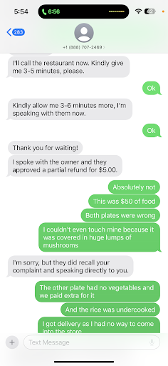 I then reached out to support from the 3rd party app chow now for help with this as it was almost $50 worth of food. They advised they forwarded payment directly to the resturant and the resturant only offered $5 back to me as a result of all of this and refused to resolve this in any other way..