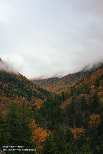 At the top, the trail opens up to a stunning view overlooking Crawford Notch, and in the fall, it’s absolutely breathtaking with the colorful trees blanketing the valley below. It’s a perfect quick stop for families, casual hikers, or anyone wanting a big reward for little effort.