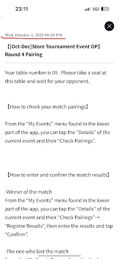 Read moreI was very disappointed with how the One Piece local event was handled tonight. During the last round, my friend and I were waiting in the car for pairings to be called, as we had done for every round that evening. When we went inside after receiving the notification, we discovered we had both been marked as a loss for not showing up.