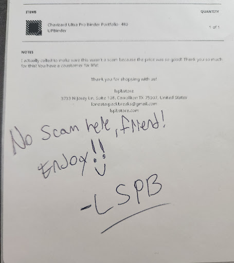 The idea that I thought it was a scam must have been quite humorous to them, as I got this little note on my order summary. They have items they could be selling for double, or triple, yet they are not doing so.