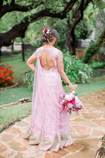 With all that being said...my husband, bridal party, and wedding guests all said the dress still turned out gorgeous. It was exactly the design, cut, and fabric I wanted. Ruby Bhandari helped me make sure the customizations I was looking for were available with the factory/warehouse she worked with in India. This dress originally in a dusty blue color but I was able to make these changes: change color of fabric, portrait back, stitched & draped net dupatta, sweetheart neckline, fitted cap sleeve, pink embroidery, silver embellishments and sequins, gold embroidered sleeves to match border of skirt. In hindsight, I wish I had added more fullness to my bridal dress but I wanted it light enough so I could still dance and party during our wedding day. Rishika at Silk Threads was very sweet and communicative via Instagram.