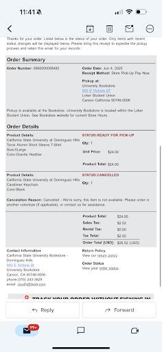 Read moreI love you CSUDH I always will be a Toro, but your bookstore service is horrible. NEVER DO A PICK UP ORDER in store. The order goes through and everything then last minute there will be something missing. Instead of getting an email all my items are ready for pick up every time I get that email. There’s something missing and a cancellation reason. Update your website do whatever you have to do fix it please. This is horrible especially for the people who constantly order from you guys. I ordered a lot from you guys. I go in store mostly I can’t. I don’t go to school there anymore or else I would instead of going through this for like the 3rd...