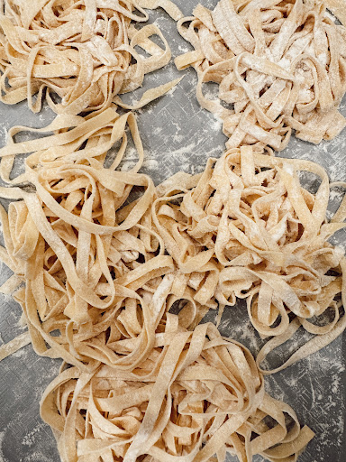 The class itself was such a unique experienceâhands on learning to make a hearty, simple yet complex bucatini pasta dish thatâs perfect for cozy fall dinners with minimal cleanup. We not only learned, but we laughed, shared stories, and made fast friends with people weâd never met. The energy in the room was contagious, and by the end of the night, it felt like we had all been part of something really special.