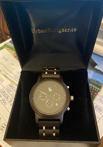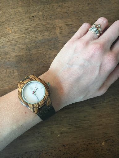 Read moreI received this watch as a birthday gift and I love it. The face is a light pink, which I find really nice for spring and summer - it isn't too girly, but just feminine enough. I like the contrast between the face and the wood and leather band. It's comfortable and light weight. The hands are glow-in-the-dark, which is also nice. I've dressed up with other bangles, but it also looks cute with my t--shirt and jeans on...