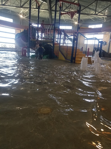 So, when we get there the lady that checked us in was very nice showed us where the locker rooms were and said that it was a family locker room. They have a nice lap pool, they are doing construction on the big slides and the hot tub and both were closed.