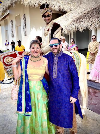 I'm especially happy Shweta carries men's clothes. Many boutiques around the country focus or exclusively carry women's clothing in-stock, which I learned the hard way shopping for my own wedding. Shweta's store Omnama is run out of her home, and in the basement area there's a full changing room, and she lets you try everything on, take your time, and she offers help with alterations too.