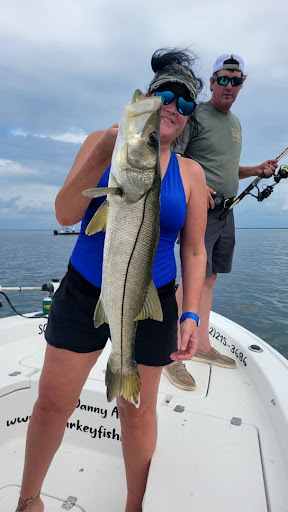 Capân Danny worked diligently with us to ensure that we were able to set up a date and time where weâd have the best chance of catching fish and was able to schedule us with Capân Dillan, who did NOT disappoint! He was very knowledgeable about what types of fish weâd be fishing for and where they were, as well as sharing his apparent respect for the nature and beauty of the fish! His enthusiasm was contagious! After catching quite a few sand and speckled trout (I also caught a catfish!!! but it wasnât a keeper). He then took us in to try to catch a triple tail (weâd never heard of them) and we almost caught a HUGE one - it would have been the biggest fish my hubbie had ever brought in, but watching the struggle was exciting (well, for me, him not so much - LOL)! On the plus side, we now have a great âthe one that got away story.â He also gave my husband and I great fishing technique tips. The shadow pic below is us patiently waiting at the dock area - it was just beautiful out on the water). Much...