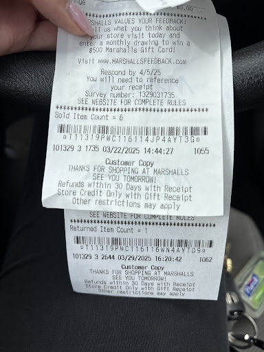 Came in today to return jeans that simply did not fit me. The jeans were $19.99, I wanted to return because they’d be of no use to me but for $20 it wasn’t that big of a deal. I went to the register, I had a receipt (top one) the tag with the pricing was unfortunately chewed by my dog but the other tags still remained on the pants. The lady working, Jacqueline, was very rude to me. She did end up doing the return but her tone was so degrading and rude. She kept saying since the tag was gone that she couldn’t return, to which I told her many times that if we couldn’t do it, it was okay it wasn’t that big of a deal. But she kept implying that I was lying or the receipt was a false/wrong receipt? Which is so ridiculous. She tried seeming like she was doing me a favor but for all that hassle she gave me I would’ve rather never attempted to return. The receipt was in fact the correct one. I came last week and bought multiple items, and kept it in the pocket of the jeans. Terrible customer service and I never want to come here again just because of that employee. She was so mean. I give 2 stars only because I love Marshall’s, but she made me so upset and embarrassed for...
