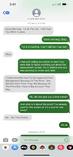 Read moreI am extremely disappointed with the service I received at this location. Despite their initial call informing me of a price increase, which I accepted, the real issues arose when I arrived to pick up my phone. The staff had not even begun working on my device, and the wait was not the primary concern.