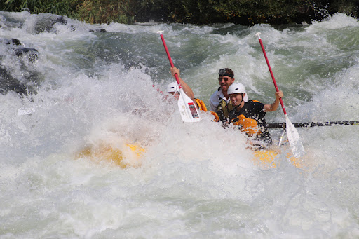 We started off the day with kayaking on class 2 rapids which weren’t too strong but still tossed us around and definitely got us wet! After a nicely prepared lunch and some down time we got to experience the powerhouse and nugget falls which was so so fun and thrilling and Dave does a great job doing fun things like dip the front and back of the boat directly in the water. We also did this really fun thing called Rodeo where we tried to balance on the raft for 8 seconds as it spun around — spoiler alert I failed.