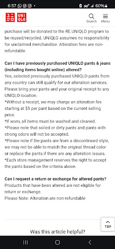 Read moreI love uniqlo and honestly this location is lovely and all of the people working were very helpful and nice. Everyone except the manager, the guy wearing a mask. I came to ask if I could get my uniqlo jeans altered that I bought in the UK, the same style was also sold at this store. Firstly, he would not look up at me, he was angry and rude. He kept cutting off the person helping me and saying they only do uniqlo alterations. Once we clarified it IS A uniqlo product he said "NO we don't do alterations from other countries bc size differences." Well on the Uniqlo policy that I attached, they clearly state they do alterations on uniqlo items from ANY country. So he literally made that up so I would leave. I don't live an area with uniqlo, so I try to go when ever I get a chance. This was such a horrible experience I feel terrible for the people working under...